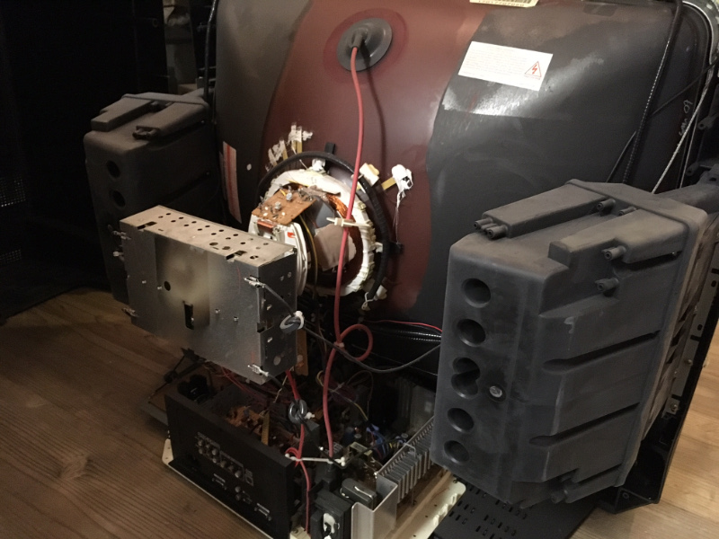 I cracked the TV open (with an absurd 18" screwdriver) and found that it wasn't dusty or grimy inside. I don't think this particular set saw a lot of use.
