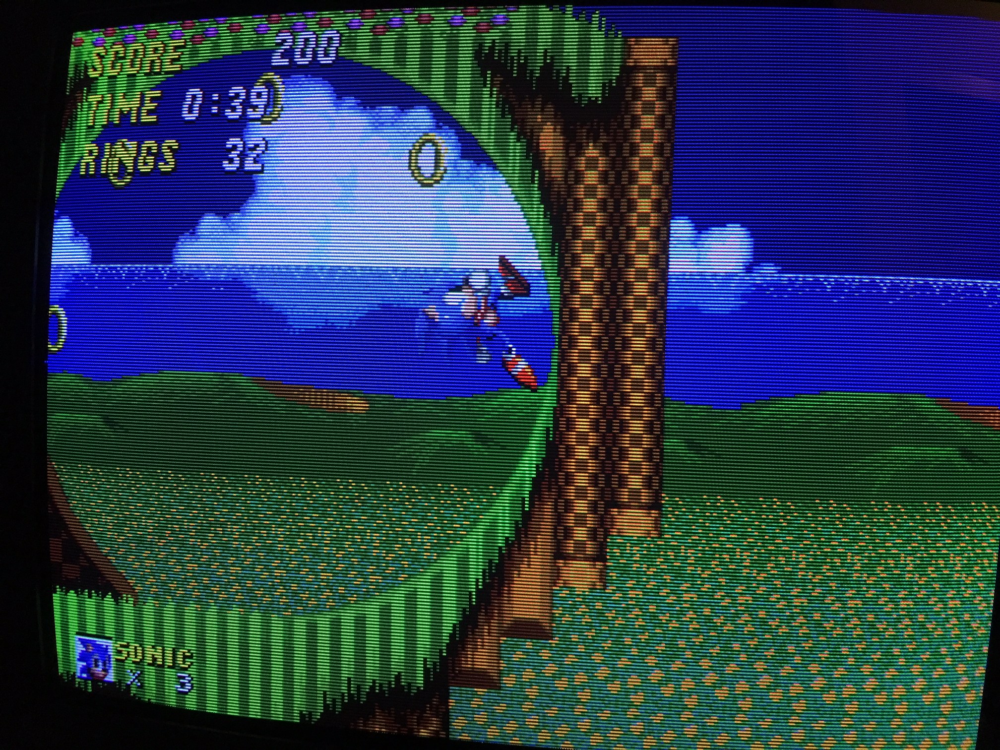 On site I gave it a test, and it was clear that 15KHz RGB didn't work through the VGA port, but I brought an XRGB3 to act as a line doubler so I could still generally try the set. Feeding line-doubled RGB to the scaler gives us a working 480p signal, which the TV accepted without any issues. The resulting image looks great, though the edges are a little too rectangular for my taste when I know this set has juicy native 15KHz rattling around inside it.