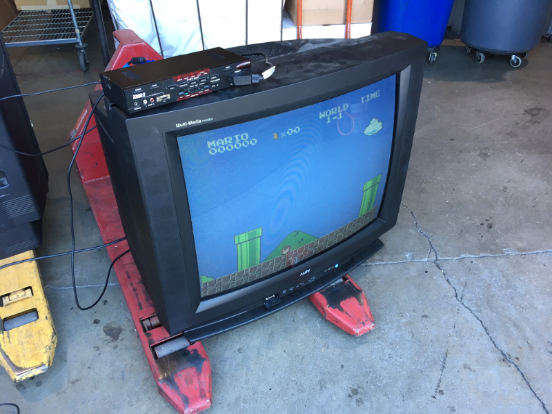 On site I gave it a test, and it was clear that 15KHz RGB didn't work through the VGA port, but I brought an XRGB3 to act as a line doubler so I could still generally try the set. Feeding line-doubled RGB to the scaler gives us a working 480p signal, which the TV accepted without any issues. The resulting image looks great, though the edges are a little too rectangular for my taste when I know this set has juicy native 15KHz rattling around inside it.